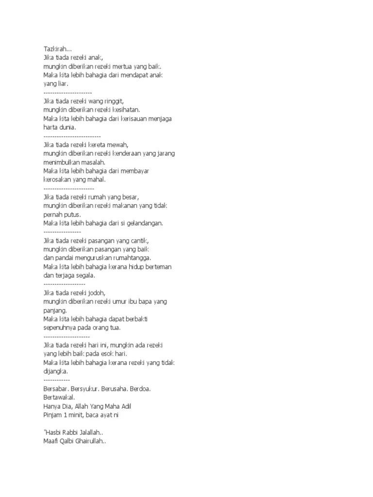 Contoh Teks Tazkirah Ringkas - Telegram Kanal Tazkirah Ringkas Dakwahtanpahenti Tgstat. 51814316 32807005 koleksi tazkirah pendek untuk guru agama. "sedekah dapat menghapus dosa sebagaimana air memadamkan api". Tazkirah ringkas tentang kehidupan berkaitan dunia adalah sementara dan . Tazkirah ringkas pilihan doa allah hijab sesungguhnya aku diutuskan untuk menyempurnakan keelokan. Menerusi tazkirah jumaat minggu lalu, walhamdulillah kita telah. Biarpun tidak seindah yang kita impikan, itu adalah ujian dan dugaan buat kita semua. Berikut contoh teks ceramah singkat mengenai ikhlas. Selain itu, sedekah juga akan memberi keberkatan .
